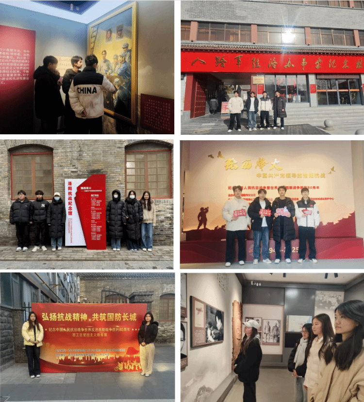 寒假期间,我院组织学生分别奔赴洛阳、南阳、长治、北京等地开展思政课寒假社会实践活动,通过沉浸式教学、现场访谈、影像记录、小组研讨、抗战故事搜集整理等方式,让学生沉浸式学习中华民族抗日战争历史,深刻感悟伟大抗战精神,在抗战纪念场馆中重温峥嵘岁月,让青春在红色洗礼中厚植爱国情怀。