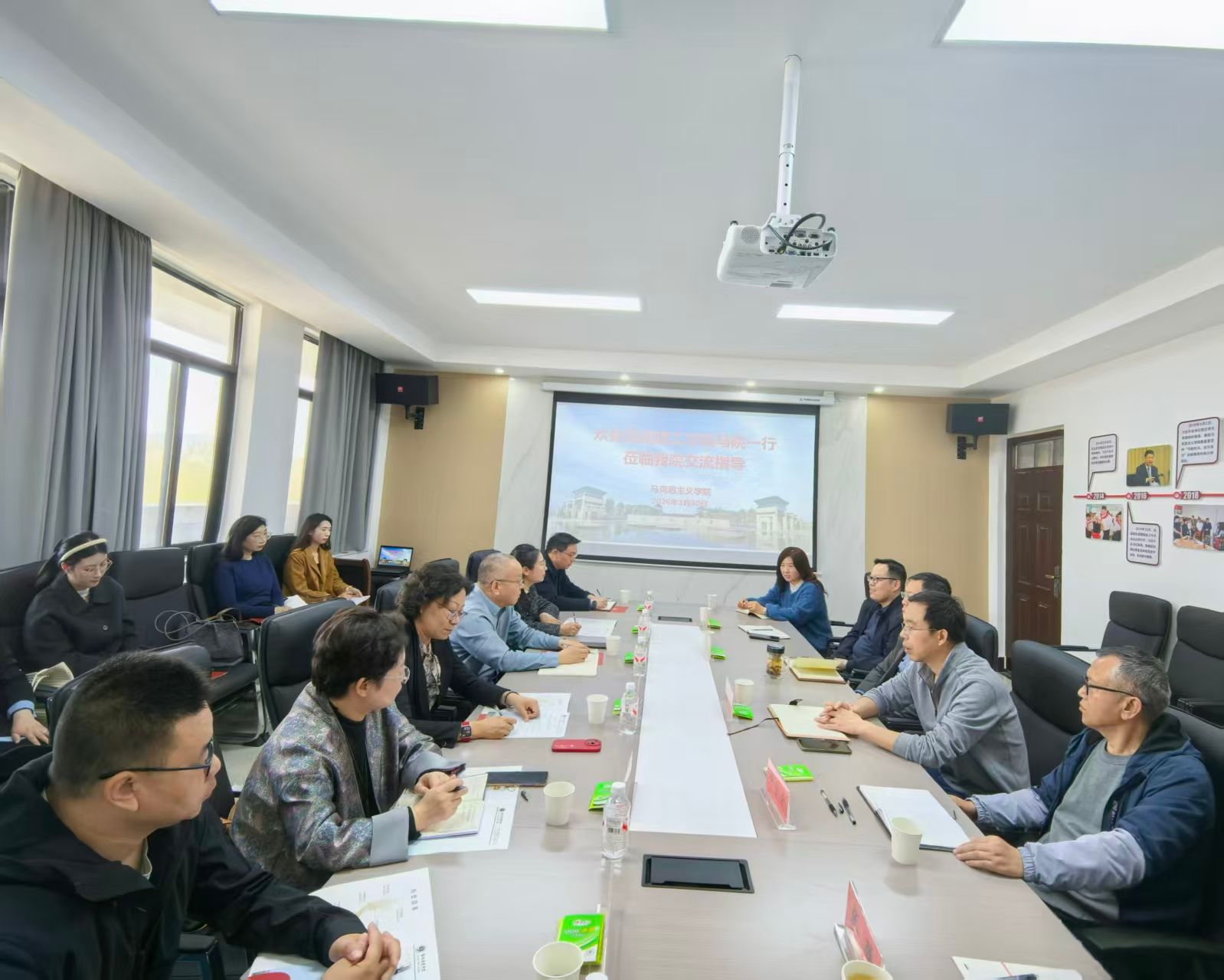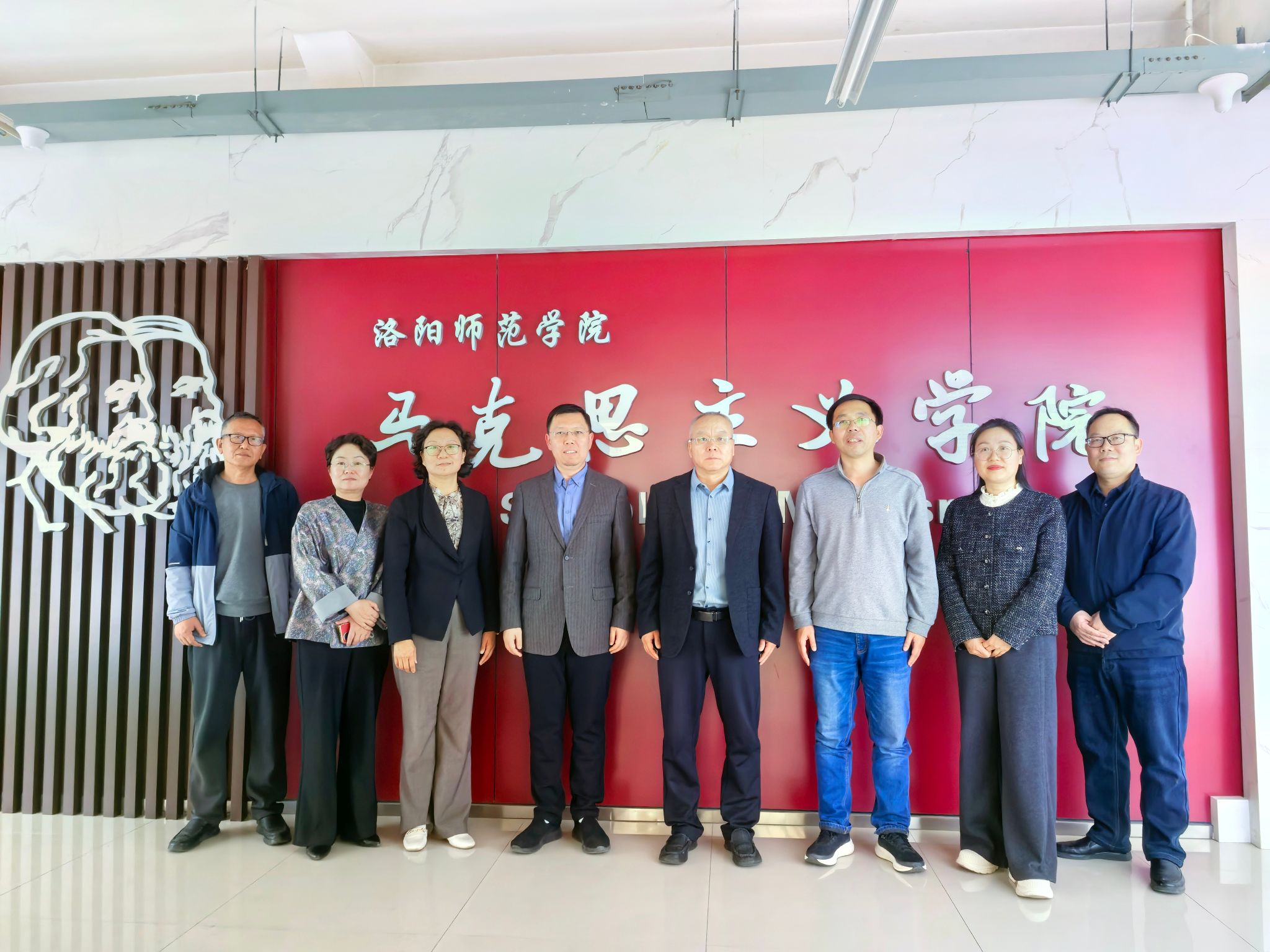 为深入贯彻落实新时代高校思政课建设工作推进会精神,学习借鉴兄弟高校马克思主义学院在思政课建设、师资队伍培养等方面的先进经验,3月30日,我院党总支书记高辉、院长朱继军一行十人,赴洛阳师范学院马克思主义学院开展专题交流学习。