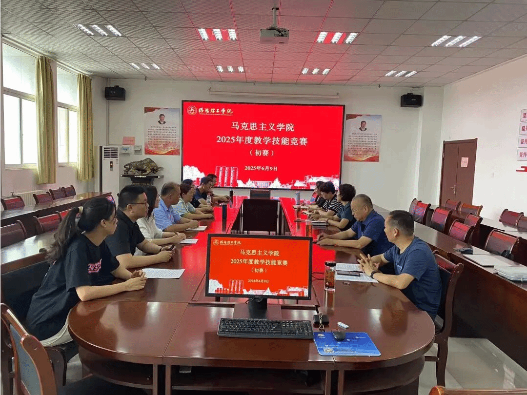 为持续提升我院教师创新教学水平,以赛促教,锻造思政金课,6月9日下午,马克思主义学院在图书馆818会议室举办2025年度教学技能竞赛初赛暨青年教师教学能力提升交流活动,学院班子和教学指导委员会成员全部参加。