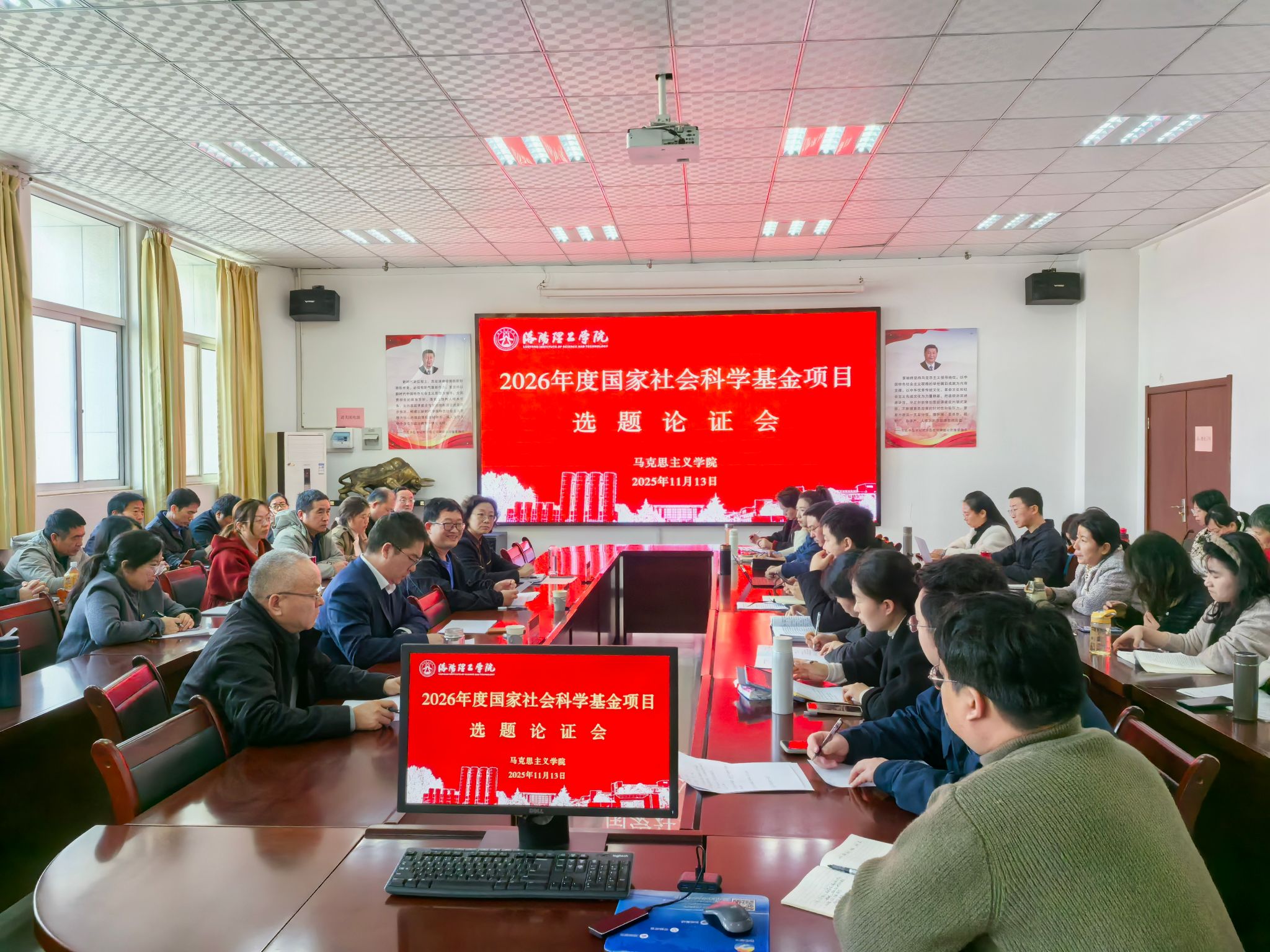 11月13日,我院召开2026年度国家社会科学基金项目选题论证会。河南科技大学人文学院朱传忠副教授、学校科研处副处长赵棚鸽教授莅临指导,学院党政领导班子及全体教师参加会议,会议由朱继军院长主持。