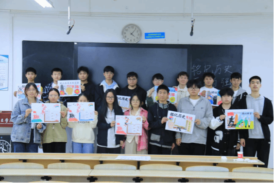 活动结束后,同学们与自己的作品合影留念,部分优秀作品经作者同意后将通过学院公众号进行展示,进一步扩大主题教育的影响力。