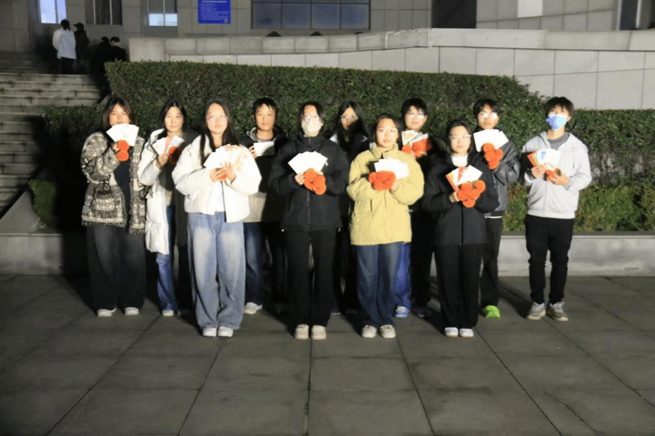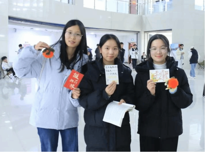 活动当晚,心理部成员手持精心准备的祝福明信片与象征好运的暖心挂件,轻声走进宁静的图书馆。他们将这份突如其来的温暖,悄悄送至正在考研的学子手中。收到祝福的考研学子在经历了短暂的惊讶后,脸上悄然绽放出笑容。有人认真阅读卡片内容,有人拿起挂件轻抚,眼中闪烁着温暖的光。这份不期而遇的关怀,如冬日暖阳,为紧张的备考氛围注入了一份温柔的力量。