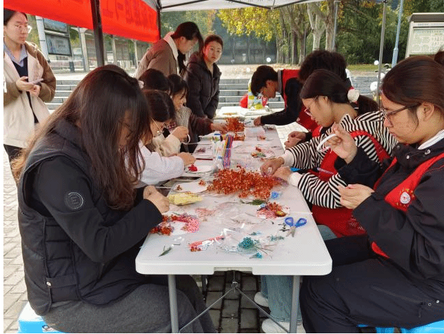 为引导同学们在季节流转中感知美好、舒缓心灵,智能建造与土木工程学院心理部于11月8日在铭苑生活广场精心举办了一场别开生面的“一叶之秋,手作清风”团扇创作心理活动。此次活动以传统团扇为载体,巧妙地将自然意趣与手工创作相融合,宛如一座心灵的桥梁,为同学们打造了一个释放压力、表达自我的创意空间。