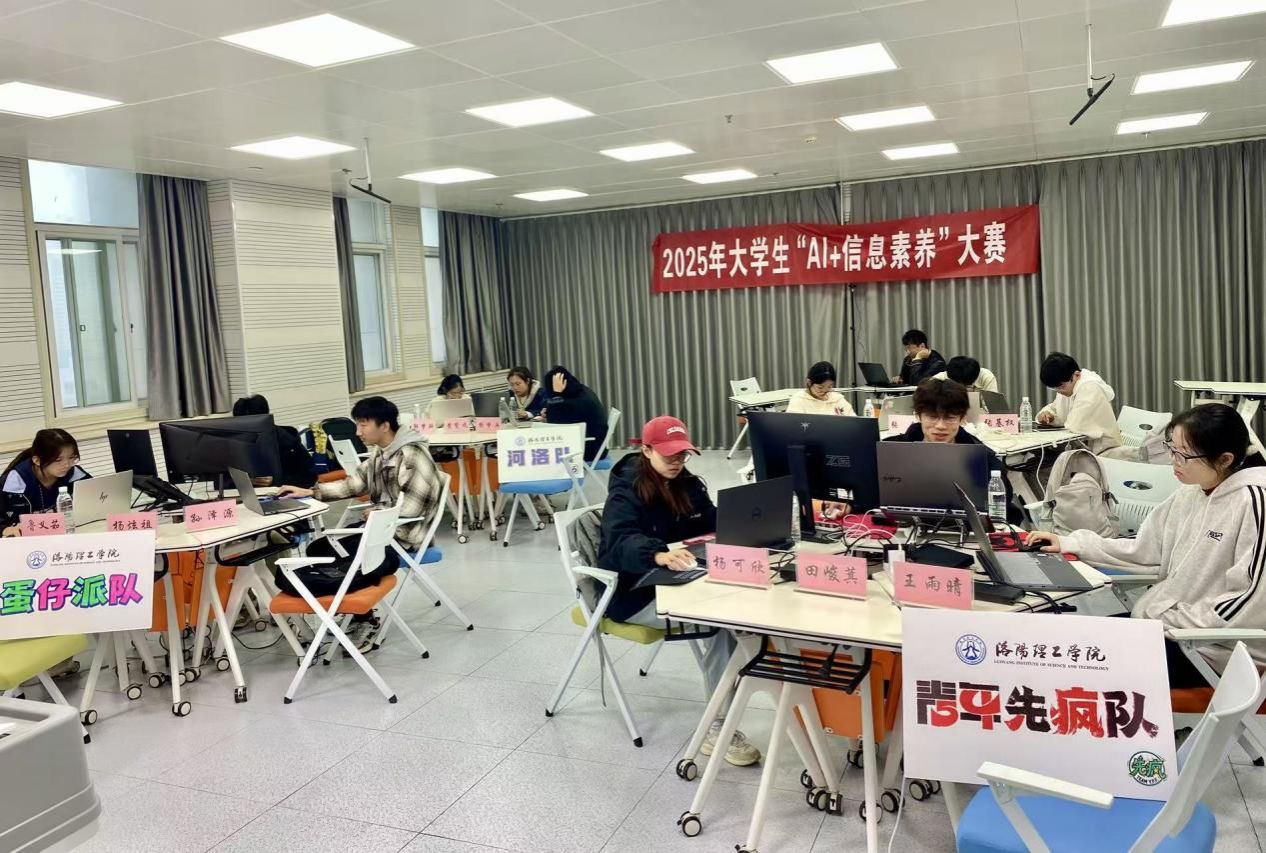 10月18日,图书馆组织我校晋级省赛学生参加了2025年大学生“AI+信息素养”大赛河南赛区省赛淘汰赛。我校共有4支队伍,12名同学参赛。最终,我校“蛋仔派对”队晋级省赛决赛。