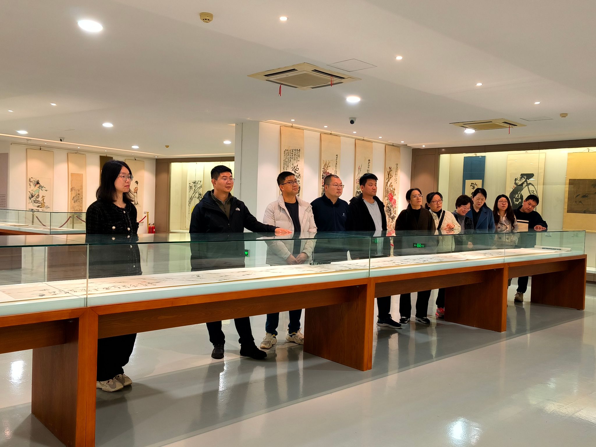 10月18日,中国农工民主党中央书画院17人到博物馆交流。图书馆部主任王针臻担任讲解员,为考察团详细介绍馆内藏品的文化价值与历史背景。