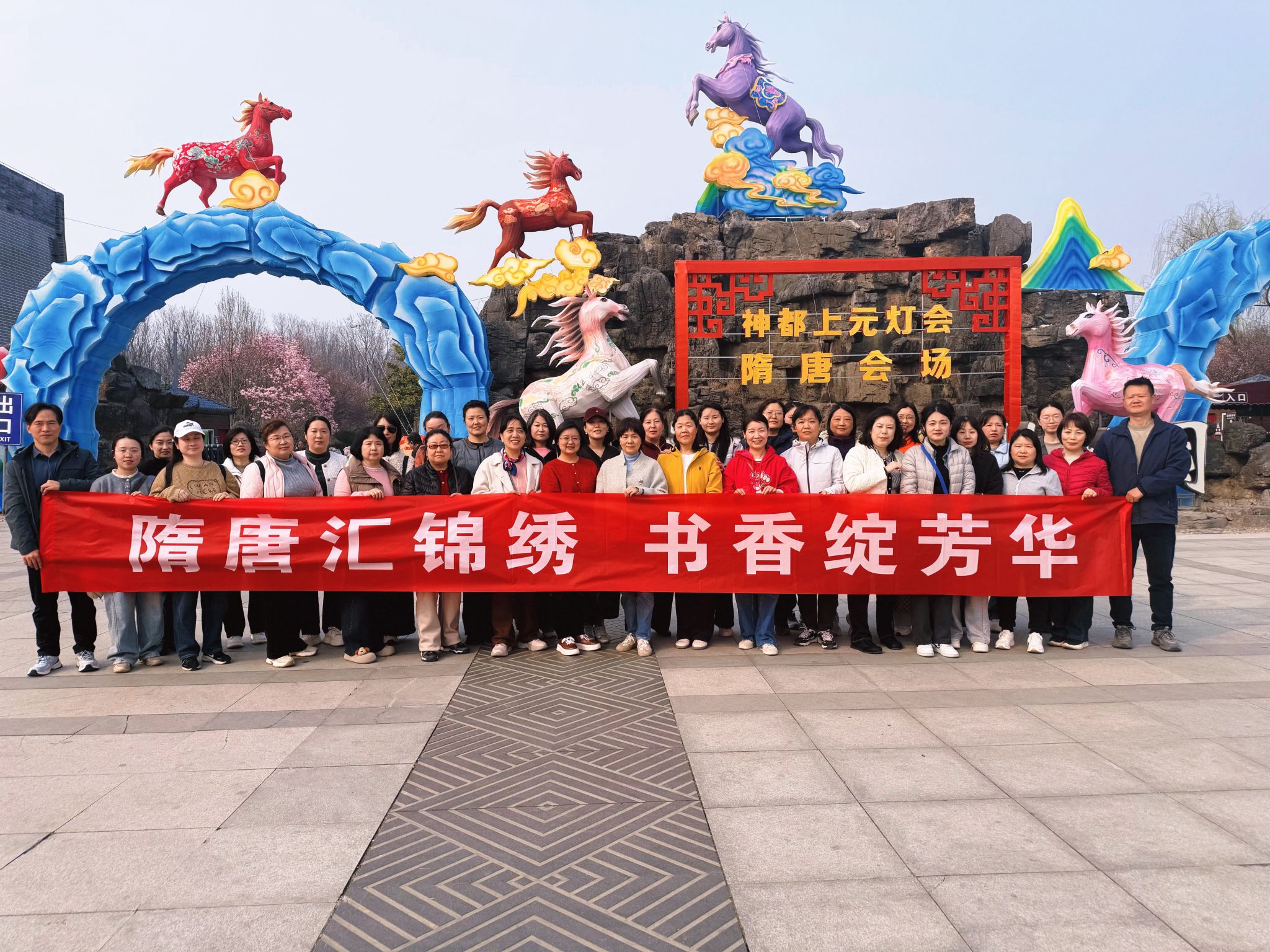 春风送暖,柳色含青。在第 116 个“三八”国际妇女节来临之际,为切实体现对女教职工的关怀,凝聚巾帼力量,3 月10日,图书馆工会以“隋唐汇锦绣,书香绽芳华”为主题,组织全体女教职工走进隋唐植物园开展春季游园活动。图书馆工会主席赵建利出席活动并发表讲话。