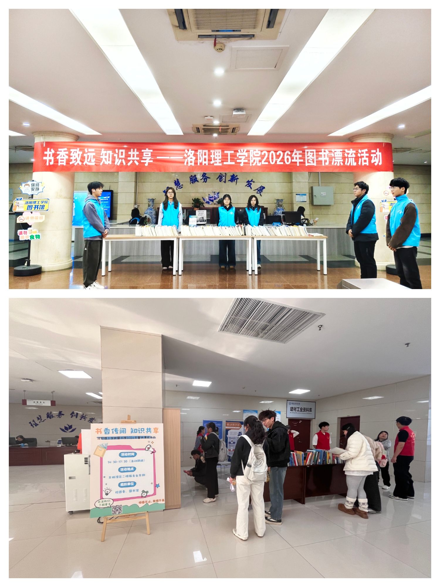 为充分盘活图书资料资源,践行绿色低碳发展理念,厚植校园书香文化底蕴,2026年3月23日至3月29日,洛阳理工学院图书馆在王城校区、开元校区图书馆同步开展“书香致远 知识共享”年度图书漂流活动,以书籍流转搭建知识共享桥梁,让浓浓书香浸润校园每一个角落。