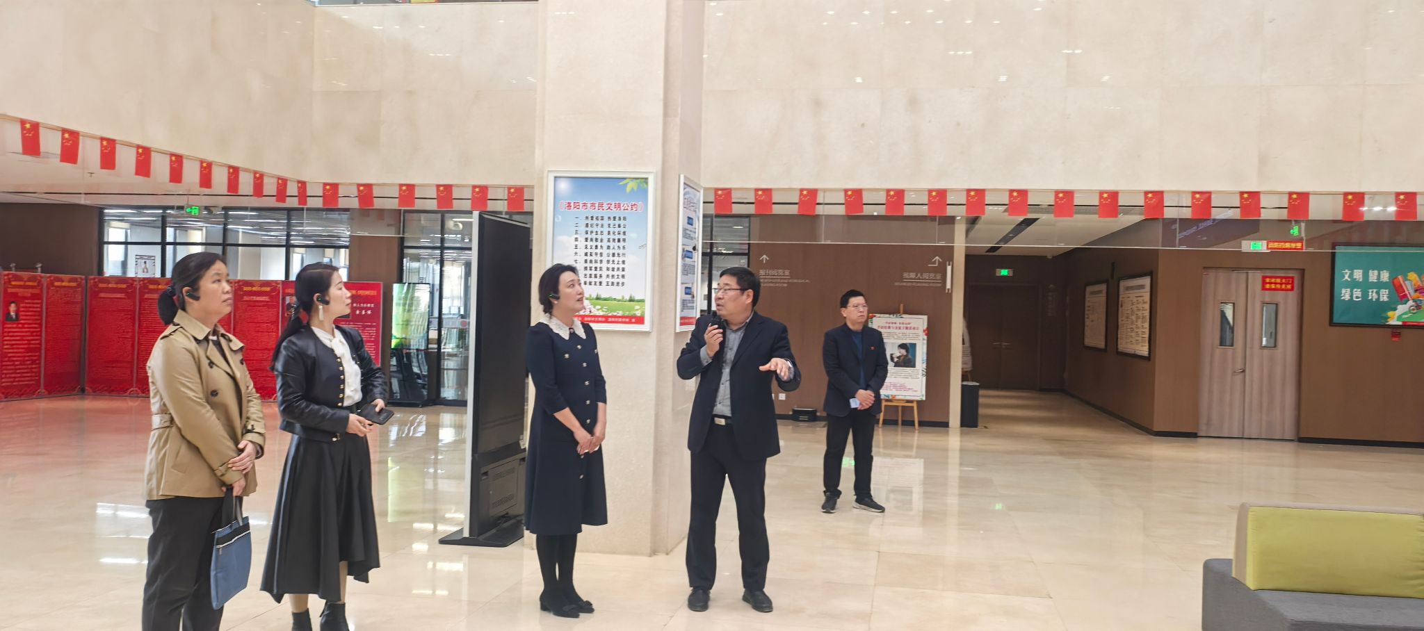 张炜代表洛阳市图书馆对卢燕一行表示欢迎,介绍了洛阳市图书馆基本概况,带领参观了报刊阅览室、休闲书吧、少儿阅览室、报告厅、影视厅、录播室、基藏文献阅览室、古籍阅览区等特色空间,详细说明了市图书馆关于资源服务与文献管理、复合型空间功能设计、智慧化服务与文化推广、区域协作与社会共建、管理与保障机制等方面的做法。