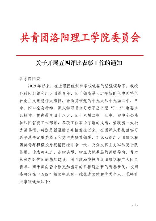 团内通知 团内通知 关于在学校第12期河洛... 洛阳理工学院关于开展2... 洛阳理工学院关于开展2... 洛阳理工学院关于开展2... 关于在学校第12期河洛... 当前位置: 网站首页 >> 旧版 >> 团内通知 >> 正文 关于开展五四评比表彰工作的通知