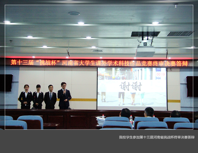 5月18日至21日,第十三届“挑战杯”河南省大学生课外学术科技作品竞赛终审决赛在河南科技大学举行。我校14项作品入围终审决赛,经过专家问辩和现场评审,我校3项作品获得特等奖,并连续第五次捧得“优胜杯”。