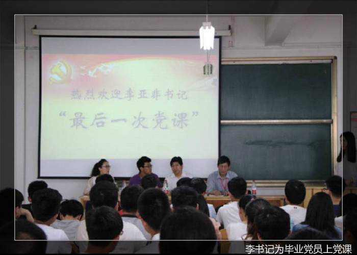 大会首先由特聘组织员李亚非老师为毕业生党员上党课,对毕业生党员给予嘱托与希冀,叮嘱毕业生党员要恪守党的章程,全心全意为人民服务,为社会服务。要真真切切的从心里去认知自己的身份,不去做有损党形象的事情。要忠于国家、忠于党,努力在以后的生活中拼搏出自己的一片天地。