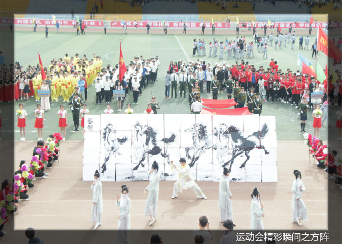 伴随着激昂雄壮的《运动员进行曲》,国旗队、校旗队、鲜花队、彩旗队、裁判员队、运动员队、教工各分会队伍在国旗护卫队的引领下,依次从主席台前走过。他们身穿整齐的衣装,迈着矫健的步伐,喊着铿锵有力的口号。国旗护卫队气宇轩昂,神采奕奕;运动员方阵步调整齐,活力四射。全校师生员工精神抖擞,意气风发,展现着我校积极进取、奋发向上的精神风貌。
