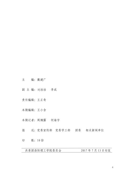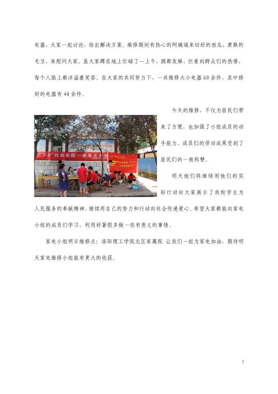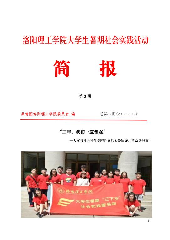 青年快讯 青年快讯 洛阳理工学院2023年入... 我校志愿者圆满完成中... 机关党委第二党支部开... 我校在第九届“创青春... 洛阳理工学院圆满召开2... 当前位置: 网站首页 >> 旧版 >> 青年快讯 >> 正文 2017洛阳理工学院暑期社会实践报道之简报第三期