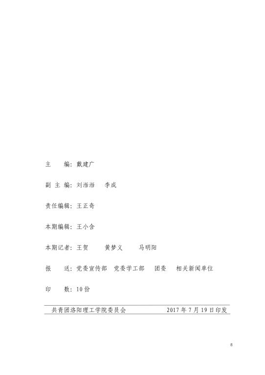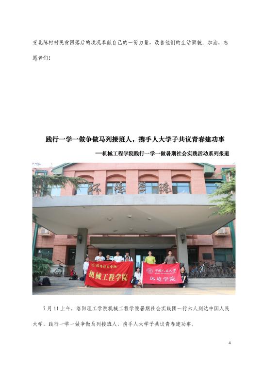 青年快讯 青年快讯 洛阳理工学院2023年入... 我校志愿者圆满完成中... 机关党委第二党支部开... 我校在第九届“创青春... 洛阳理工学院圆满召开2... 当前位置: 网站首页 >> 旧版 >> 青年快讯 >> 正文 2017洛阳理工学院暑期社会实践报道之简报第五期