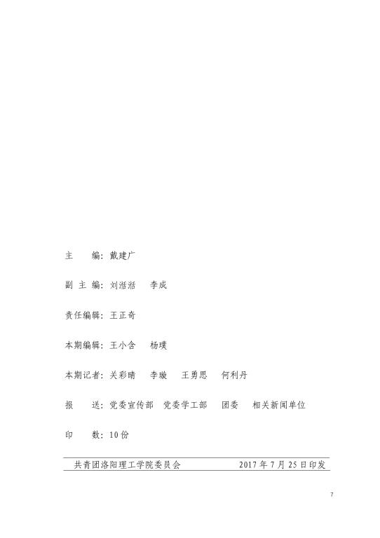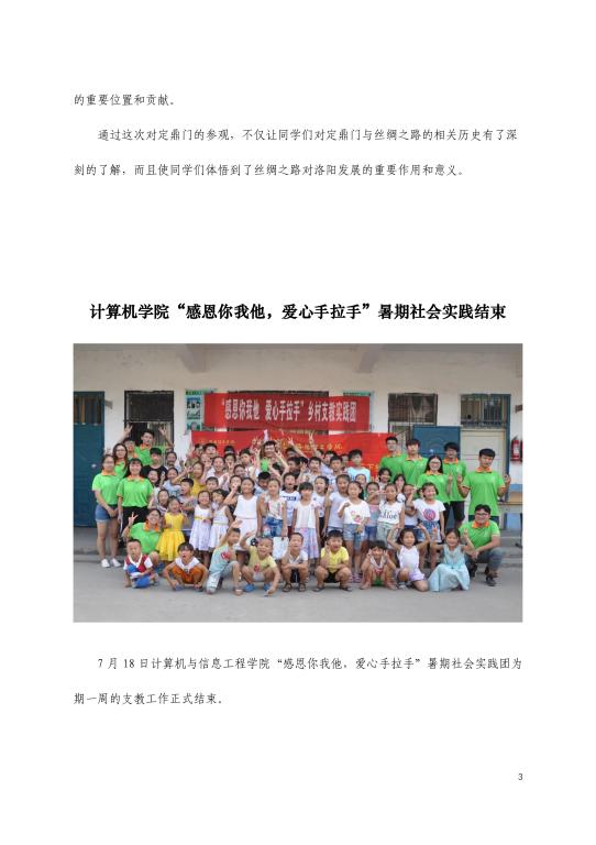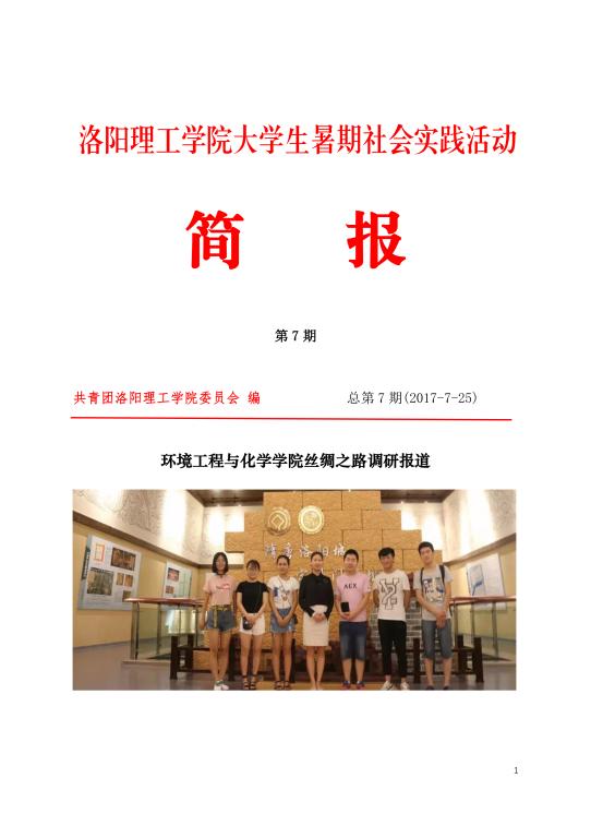 青年快讯 青年快讯 洛阳理工学院2023年入... 我校志愿者圆满完成中... 机关党委第二党支部开... 我校在第九届“创青春... 洛阳理工学院圆满召开2... 当前位置: 网站首页 >> 旧版 >> 青年快讯 >> 正文 2017洛阳理工学院暑期社会实践报道之简报第七期