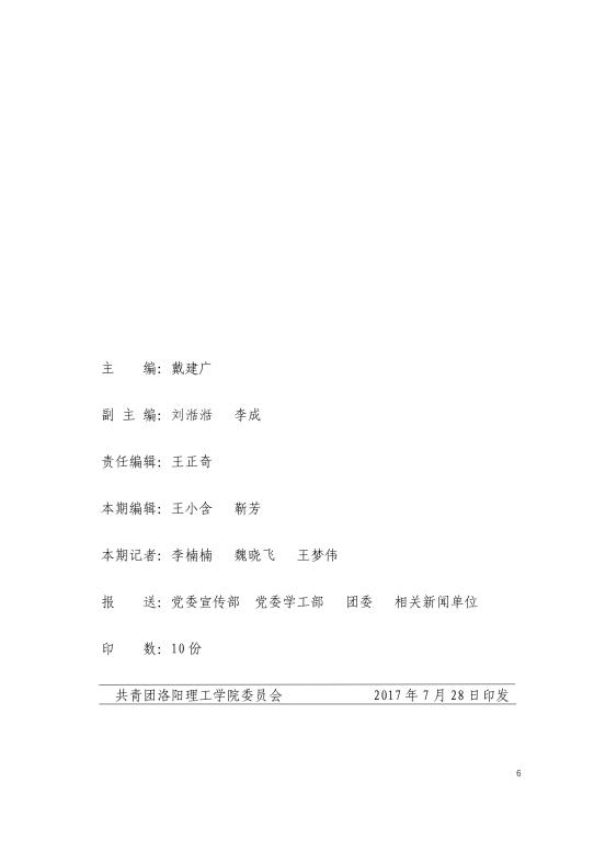 青年快讯 青年快讯 洛阳理工学院2023年入... 我校志愿者圆满完成中... 机关党委第二党支部开... 我校在第九届“创青春... 洛阳理工学院圆满召开2... 当前位置: 网站首页 >> 旧版 >> 青年快讯 >> 正文 2017洛阳理工学院暑期社会实践报道之简报第八期