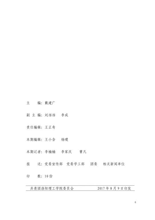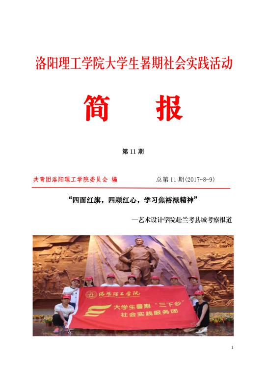 青年快讯 青年快讯 洛阳理工学院2023年入... 我校志愿者圆满完成中... 机关党委第二党支部开... 我校在第九届“创青春... 洛阳理工学院圆满召开2... 当前位置: 网站首页 >> 旧版 >> 青年快讯 >> 正文 2017洛阳理工学院暑期社会实践报道之简报第十一期
