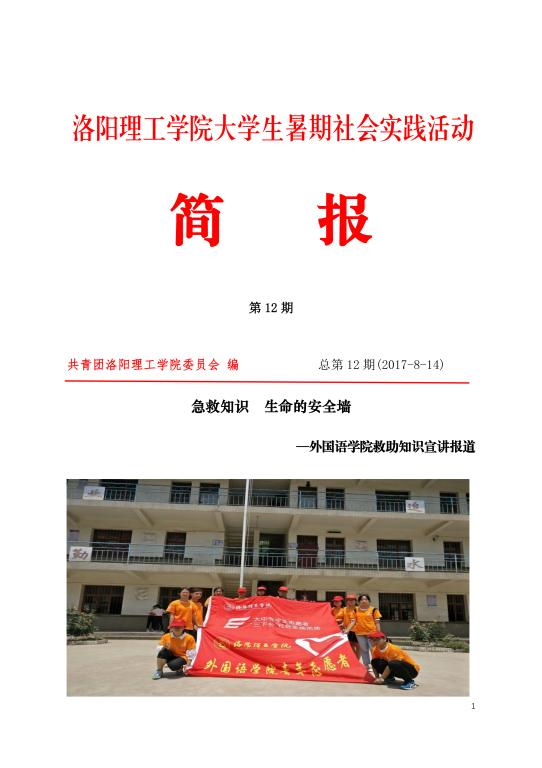 青年快讯 青年快讯 洛阳理工学院2023年入... 我校志愿者圆满完成中... 机关党委第二党支部开... 我校在第九届“创青春... 洛阳理工学院圆满召开2... 当前位置: 网站首页 >> 旧版 >> 青年快讯 >> 正文 2017洛阳理工学院暑期社会实践报道之简报第十二期