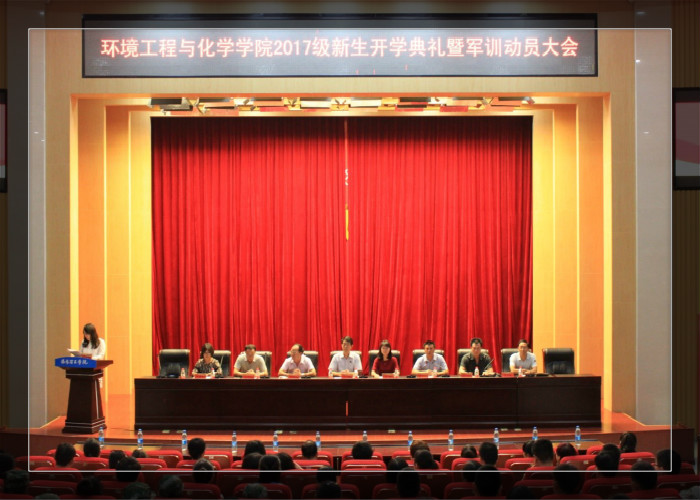 9月17日下午,环境工程与化学学院2017级新生开学典礼暨军训动员大会在王城校区图书馆报告厅隆重举行。院党委书记王莉老师、院长张少文老师、院党委副书记余久华老师,环化学院全体教师及2017级全体新生出席开学典礼。