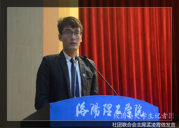 第九届大学生社团联合会主席孟凌霄作社团工作报告,题为《服务“一心双环”组织格局、锐意进取 为开创我校社团工作的新局面而努力奋斗》,并对新一届大学生社团联合会一年来工作进行了全面总结回顾。