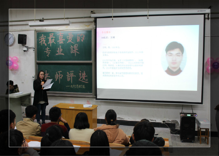 为了丰富校园文化生活,拉近老师与学生之间的距离,构建和谐的师生情。11月28日,经济与管理学院学生会学习部在阶梯教室A-B举办"我最喜爱的专业课老师"评选活动。