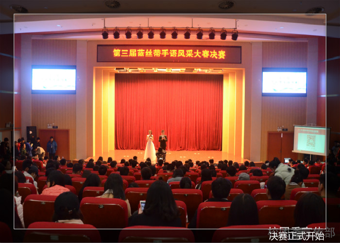 为了丰富校园艺术文化生活,展现新时代大学生特有的激情风貌,全面展现青年志愿者特有的精神风貌,12月2日,我校第三届蓝丝带手语风采大赛决赛在王城校区学术报告厅成功举办。校学生团委副书记胡远洋,校学生会主席张伟、副主席任志轩,大学生社团联合会主席史永强,大学生科技协会主席丁远,青年志愿者协会主席李莉莉,副主席石晨瑞、柳勇、尚梦娜,以及各学院分会主席出席活动。洛阳市特殊学校全体师生受邀出席。我校500余名学生观看了此次比赛。