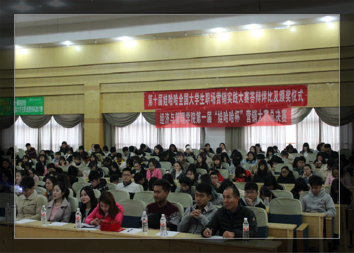 12月2日上午,由经济与管理学院主办的 “盖世英雄,营创未来”暨娃哈哈杯决赛在西区报告厅隆重举行。经管学院团委书记赵锐、娃哈哈洛阳拓展经理刘杨女士出席此次活动。