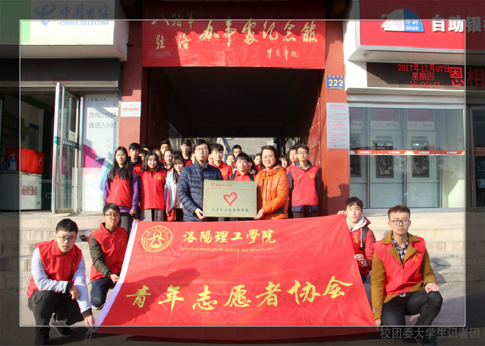 12月7日,洛阳理工学院团委在八路军驻洛办事处纪念馆建立大学生志愿服务基地。校团委相关老师和洛八办纪念馆保卫科科长吴桂萍女士,以及校青协的志愿者们参加了挂牌仪式。