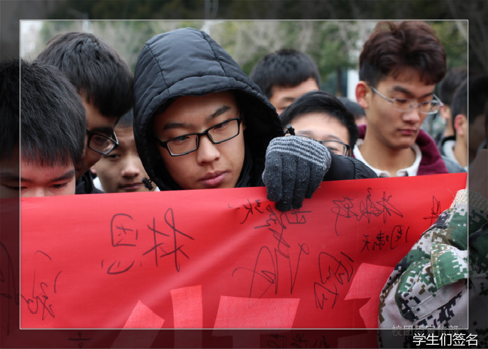 仪式结束后全体师生在公祭条幅上郑重签上自己的名字,表达对死难者的哀思和不忘历史的决心。同时,部分师生在国家公祭网上进行了悼念活动。