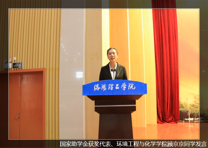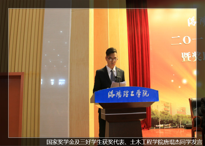国家奖学金及三好学生获奖代表、土木工程学院唐琨杰作了发言,表达了对学校、老师和同学们的感恩之情,畅谈了自己的学习体会与感悟;优秀学生干部代表、机械工程学院葛腾飞汇报了自己当学生干部的付出与收获、责任与担当;国家助学金获奖代表、环境工程与化学学院顾京京回顾了自己在国家、学校和老师关心资助下怎样战胜困难而独立、乐观、自强以及不断成长进步的奋斗历程。