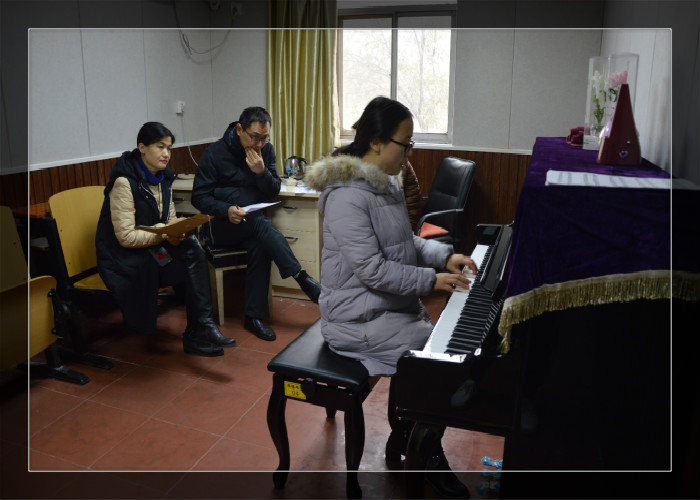 为帮助学生树立自信心,促进学生积极主动地发展,教育科学与音乐学院于12月14日下午在琴楼进行15级学前教育专业的弹唱技能考核,学前教育专业数名老师作为考核官。