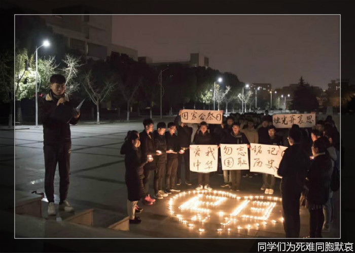 12月13日,第四个南京大屠杀死难者国家公祭日,土木工程学院青年志愿者协会带领学院学生以一同缅怀先烈,同时警醒自己: 南京大屠杀的历史,应该永远被铭记!