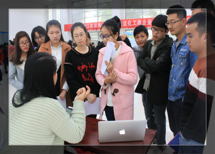 为了做好这次化工企业组团招聘活动,环化学院和大学生就业中心曾多次走访江苏滨海县人社局和沿海工业园管委会。当地政府和园区领导也热情协助学校,向园区内企业广泛宣传和推荐我校毕业生,并积极组织带领有需求的企业前来我校现场招聘。这次活动的成功举办,不仅是二级学院独立开展具有行业特色大型招聘活动的一次有益尝试,也是通过校政合作搭建人才供需平台的一个良好成果。