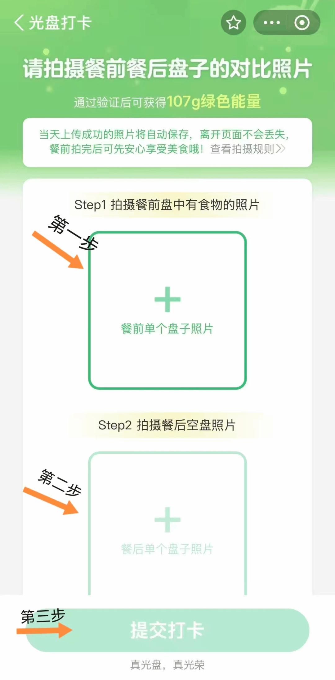 支付宝搜索绿色行动小程序 参与光盘打卡