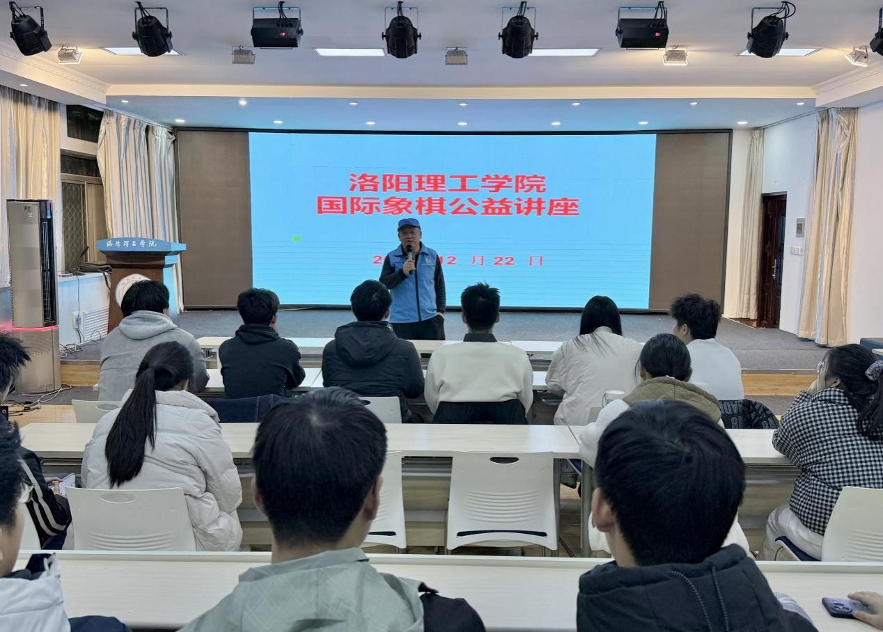 12月22日,“奕动青春,棋乐无穷”棋艺比赛颁奖典礼在王城校区心理情景剧场隆重举行。现场对获奖选手进行了表彰,嘉宾们为优胜者颁发荣誉证书,充分肯定他们在棋艺比赛中的卓越风采,并激励更多学子亲近棋艺、传承经典。颁奖仪式后,洛阳市国际象棋协会会长贾真为在场同学带来了一场精彩的国际象棋公益讲座,进一步拓展了同学们的棋类视野与文化认知。