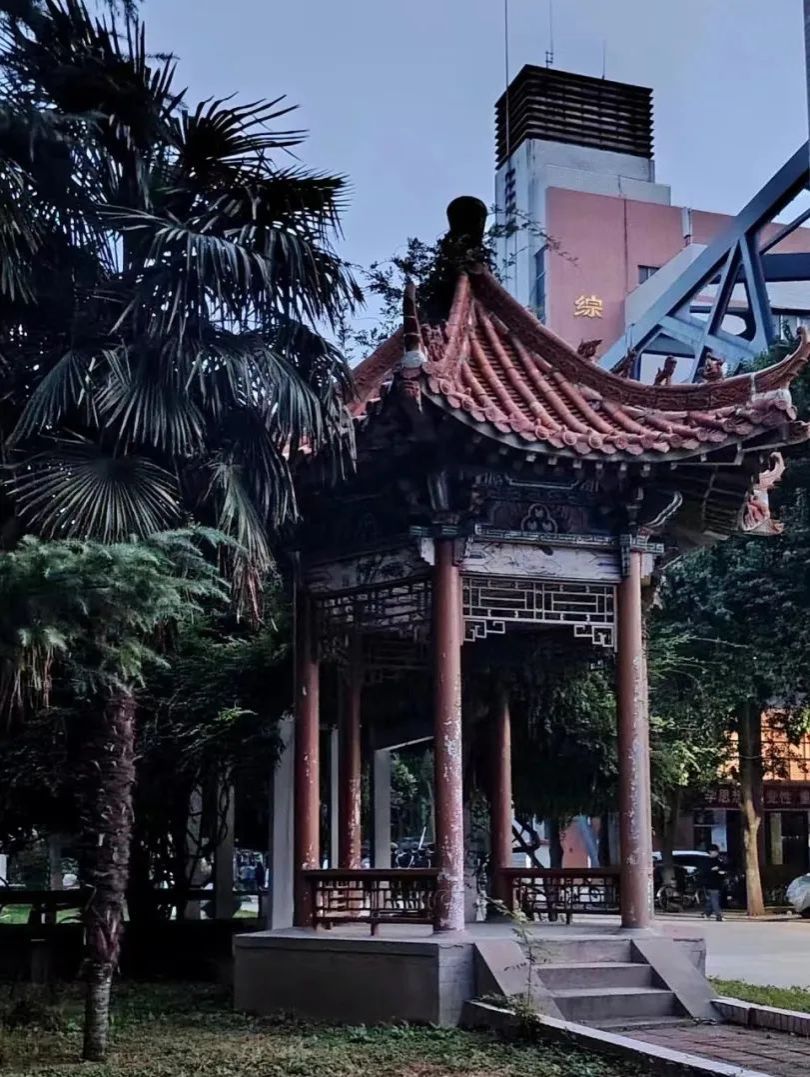 校园的角落也保留了古色古香,坐在亭下乘凉仿佛也穿梭古今。