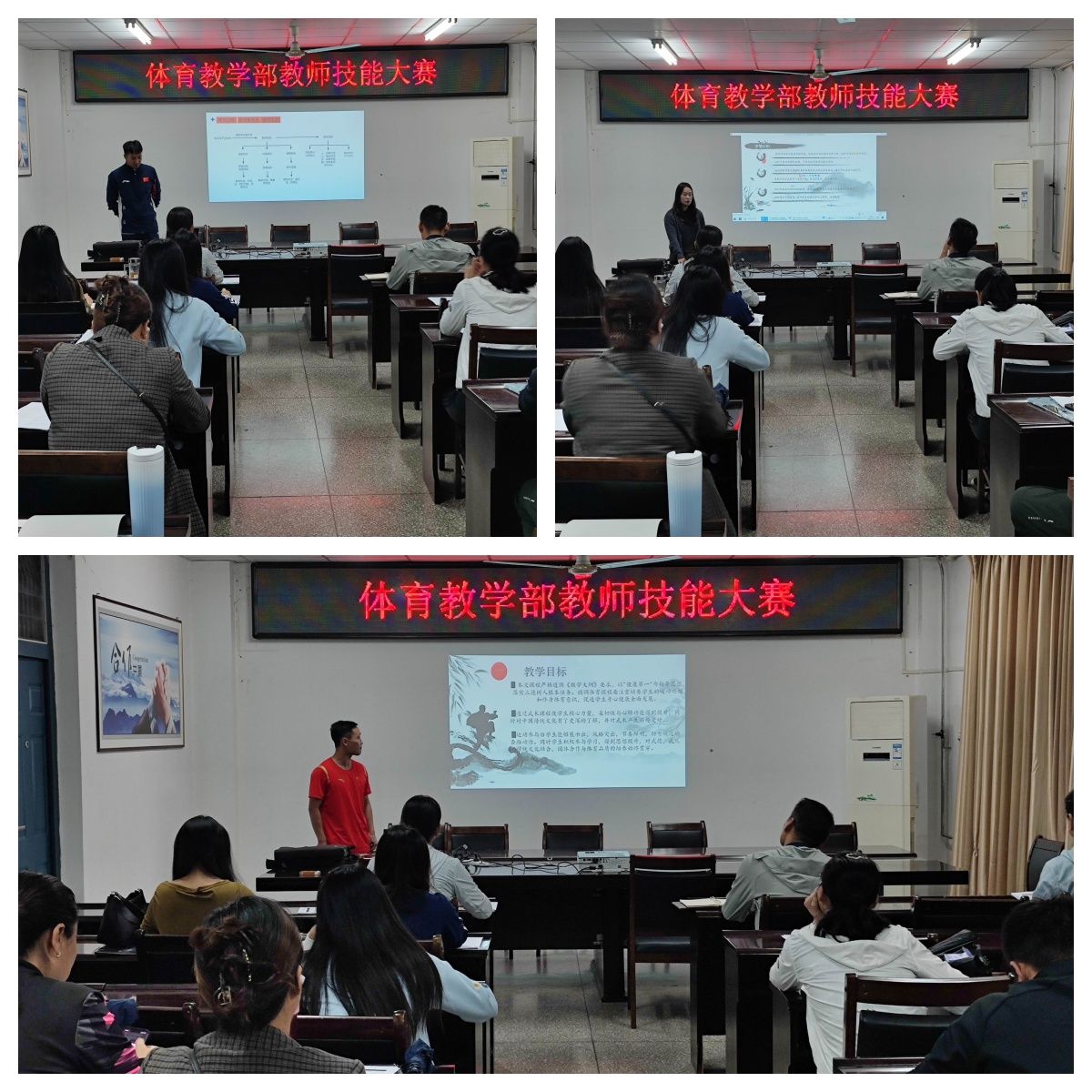 本次大赛内容全面、设计科学,涵盖体能测试、专项技能展示、说课及实践授课等环节,全面考察教师的综合素养。体育教学部班子成员以身作则,全程参与,体育教学部全体教师踊跃参加,认真准备,同台竞技,充分展现了扎实的专业功底和积极向上的精神风貌。