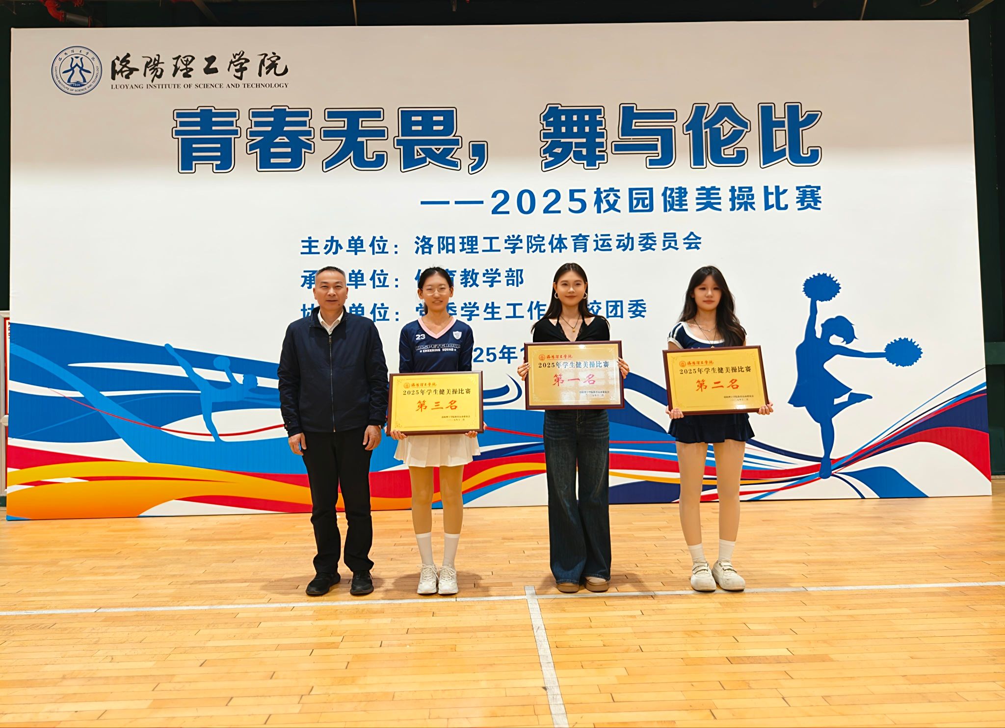 近日,“青春无畏 舞与伦比”我校2025校园健美操比赛在王城校区体育馆举行。来自全校16个二级学院的健美操代表队同台竞技,展现了洛理工学子蓬勃的青春活力。党委副书记、工会主席曾涛出席闭幕式并为获奖团队颁奖。