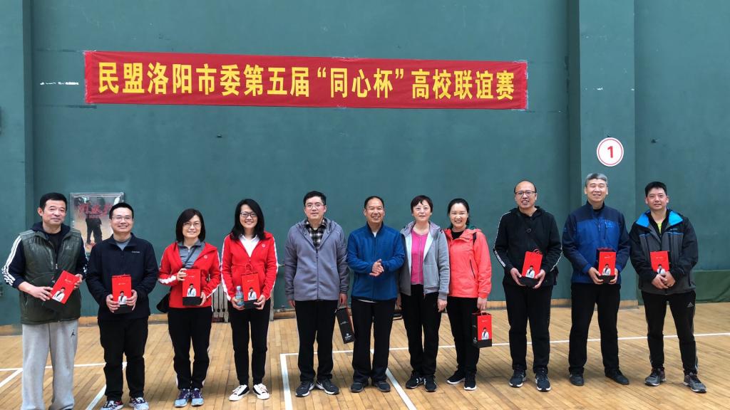 11月9日,民盟洛阳市委第五届“同心杯”高校联谊赛在河南科技大学体育馆举行,民盟洛阳市委副主委赵邦屯、许留霞、王现利出席。在王新武主委的带领下,民盟理工学院总支一行十一人参加了联谊赛,与来自河南科技大学、洛阳师范学院、河南林业职业学院的盟员同台竞技。本次联谊赛项目丰富多样,分别有一分钟跳绳、一分钟踢毽子、四人投接球、托球接力、定点投篮、夹乒乓球比赛、双升、乒乓球和羽毛球等。民盟理工学院总支积极参与了所有项目,本着友谊第一,比赛第二的精神,盟员们挥洒汗水,奋勇拼搏,你追我赶,赛出了风格,赛出了水平,充分展示出盟员朝气蓬勃、昂扬向上的精神风貌。