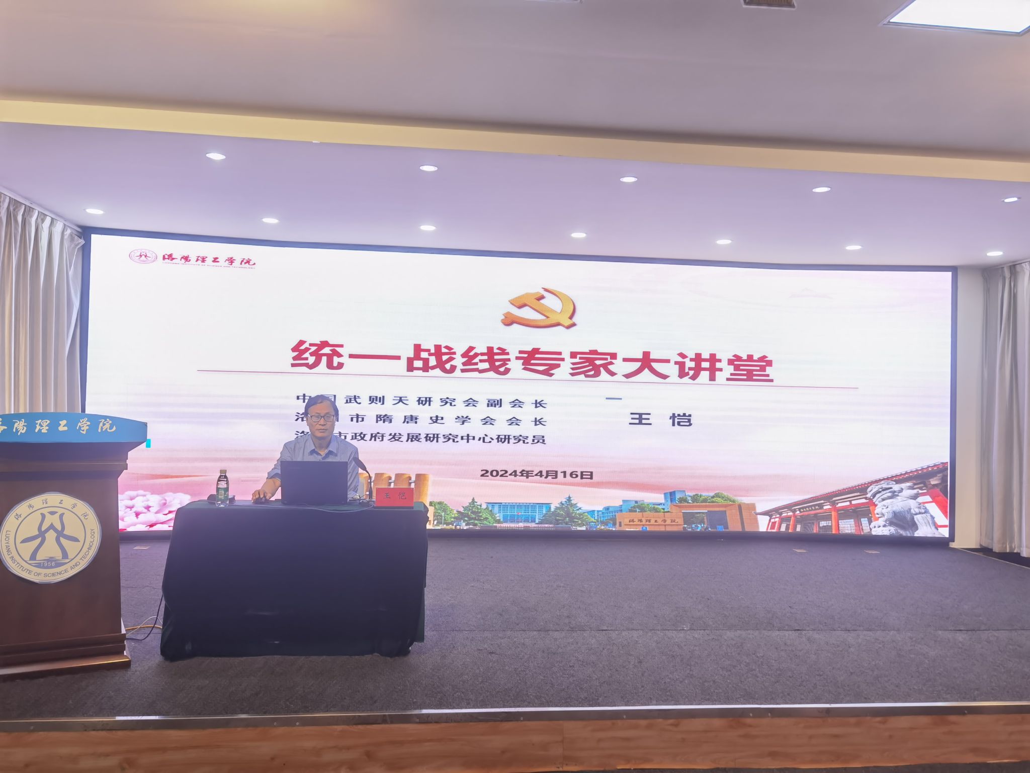 4月16日上午,由我校党委统战部、洛龙区委统战部联合举办的统一战线专家大讲堂在公共教学楼一楼大学生心理健康教育中心情景剧场开讲。洛阳市工商联主席、洛龙区工商联主席、洛阳天久科技有限公司董事长侯建军,校党委统战部部长郭强,人文与社会科学学院院长扈耕田,洛龙区委统战部、区侨联、区工商联、团区委、学府街道等相关单位负责人,辖区文旅文创相关企业负责人及我校人文与社会科学学院文化遗产专业学生约150人参加。
