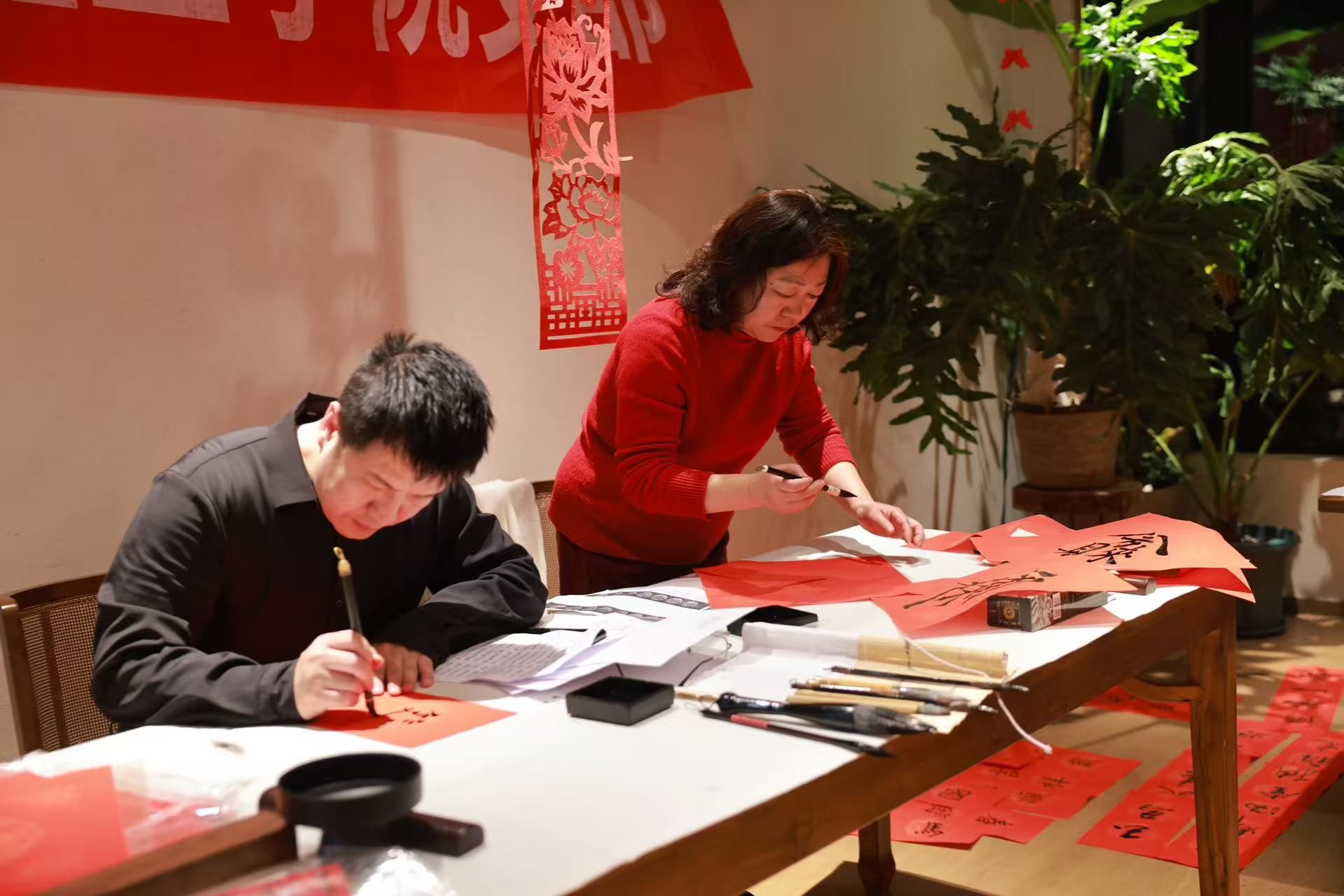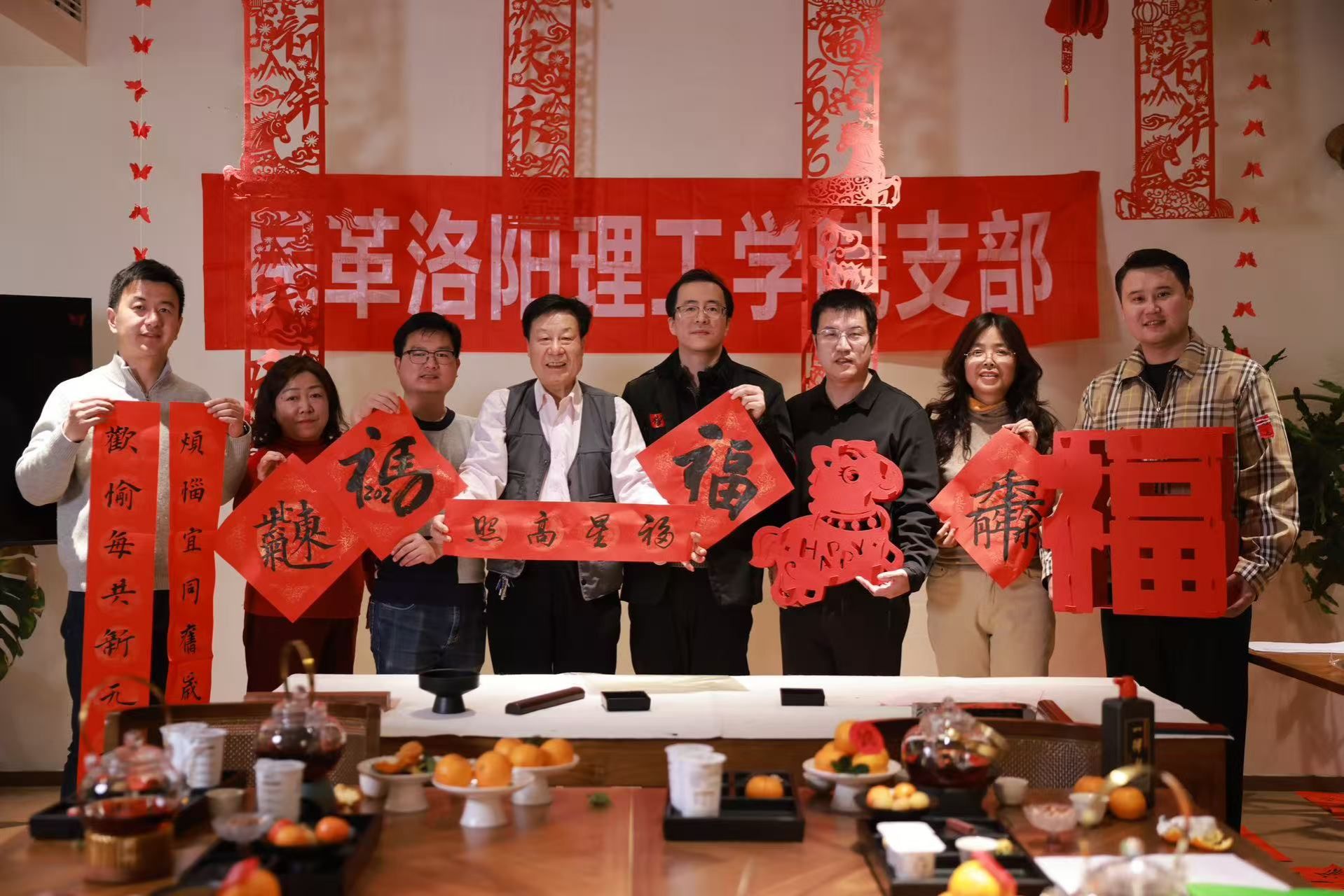 会议尾声,支部的几个书法老师邢立志、韩颖和孙小龙等挥毫泼墨书写春联与“福”字,一幅幅寓意吉祥的作品饱含新春祝福与履职热忱,为此次会议会增添了温馨浓厚的节日气息。