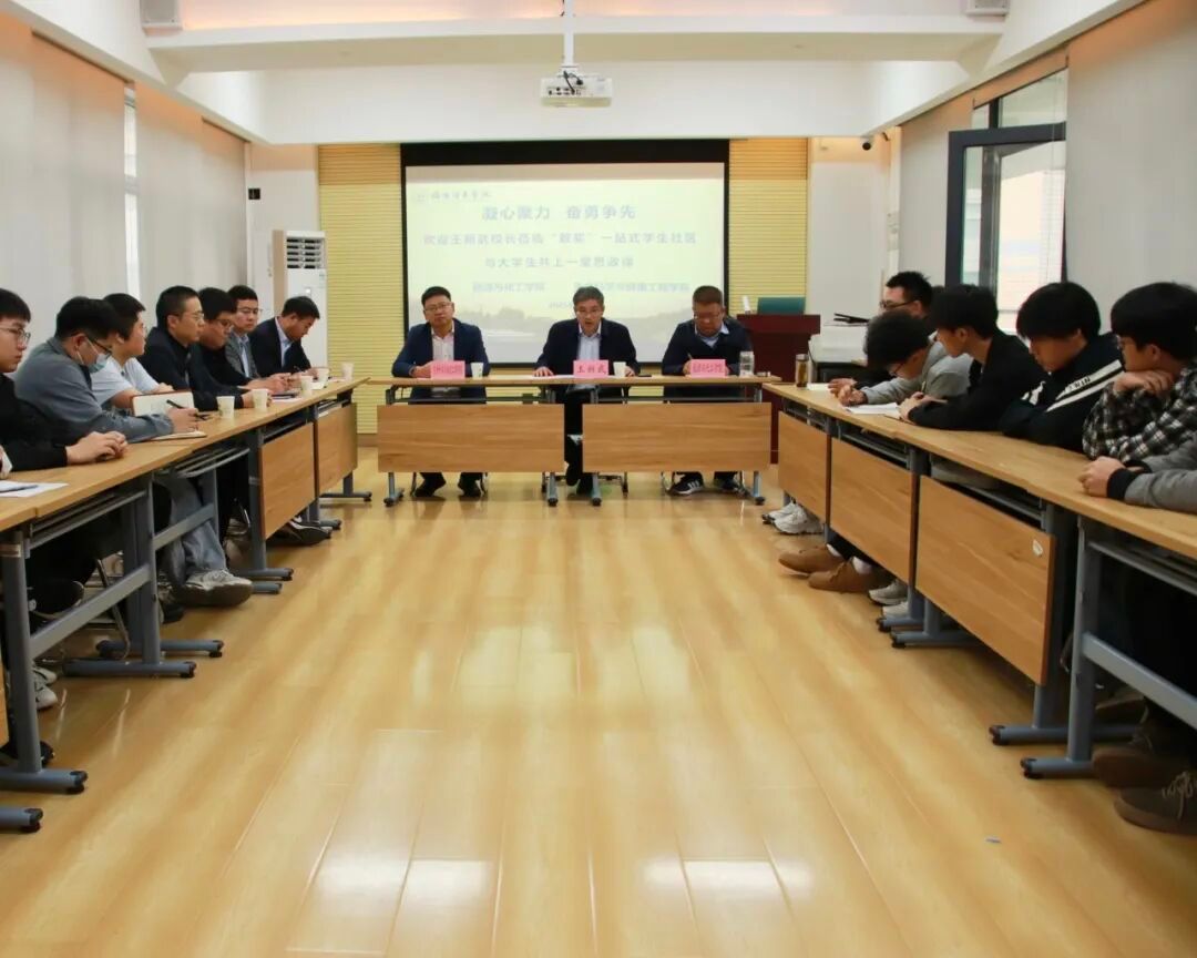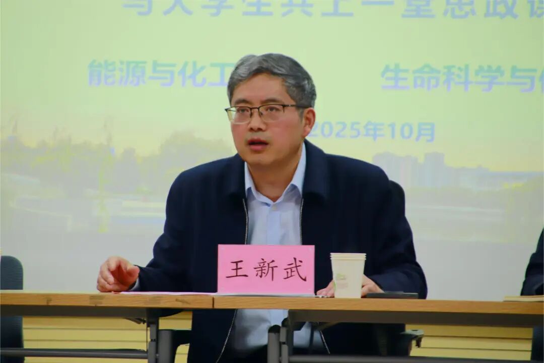 10月5日下午,副校长王新武在王城校区致实一站式学生社区宣讲室为我校师生代表讲授主题为《在民族复兴伟业的征途中绽放青春光彩》的思政课。致实社区能源与化工学院和生命科学与健康工程学院的50余名师生代表参加学习。