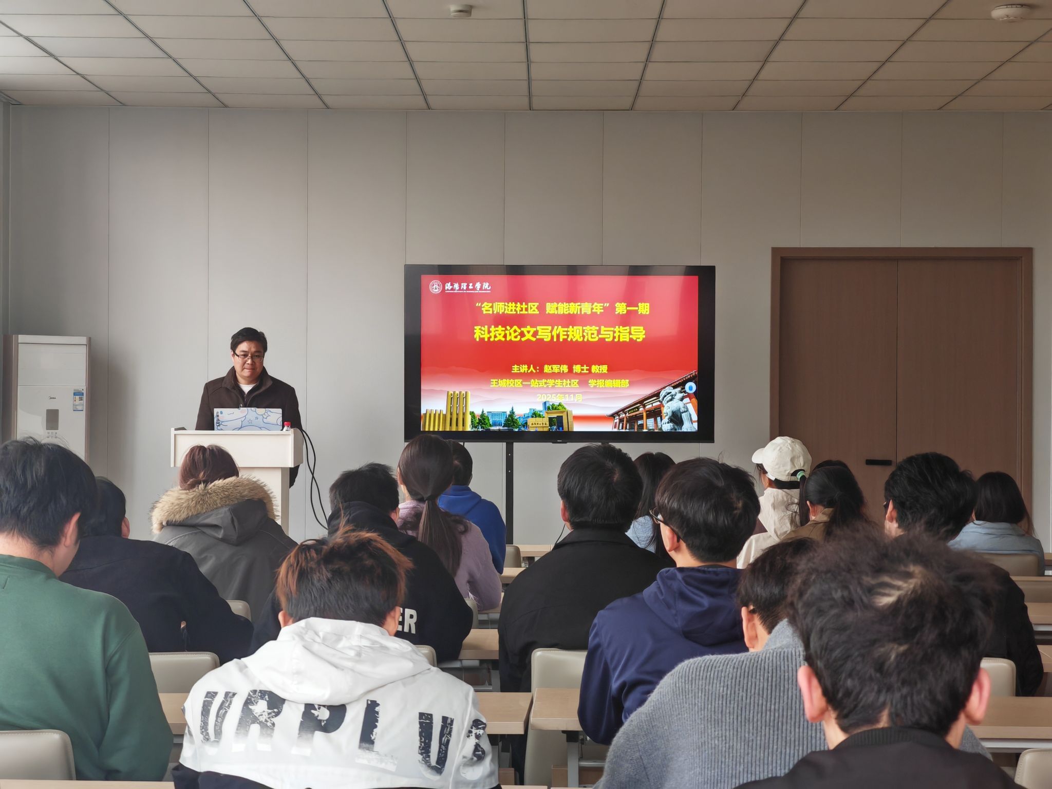 为帮助青年学子夯实学术基础,提升科技论文写作能力。11月13日下午3点,王城校区一站式学生社区联合校学报编辑部在致新社区三楼多功能厅举办“名师进社区 赋能新青年”系列活动首期讲座。活动特邀学报编辑部赵军伟教授担任主讲教师,以“科技论文写作规范与指导”为主题,王城校区各学院学生代表参加。