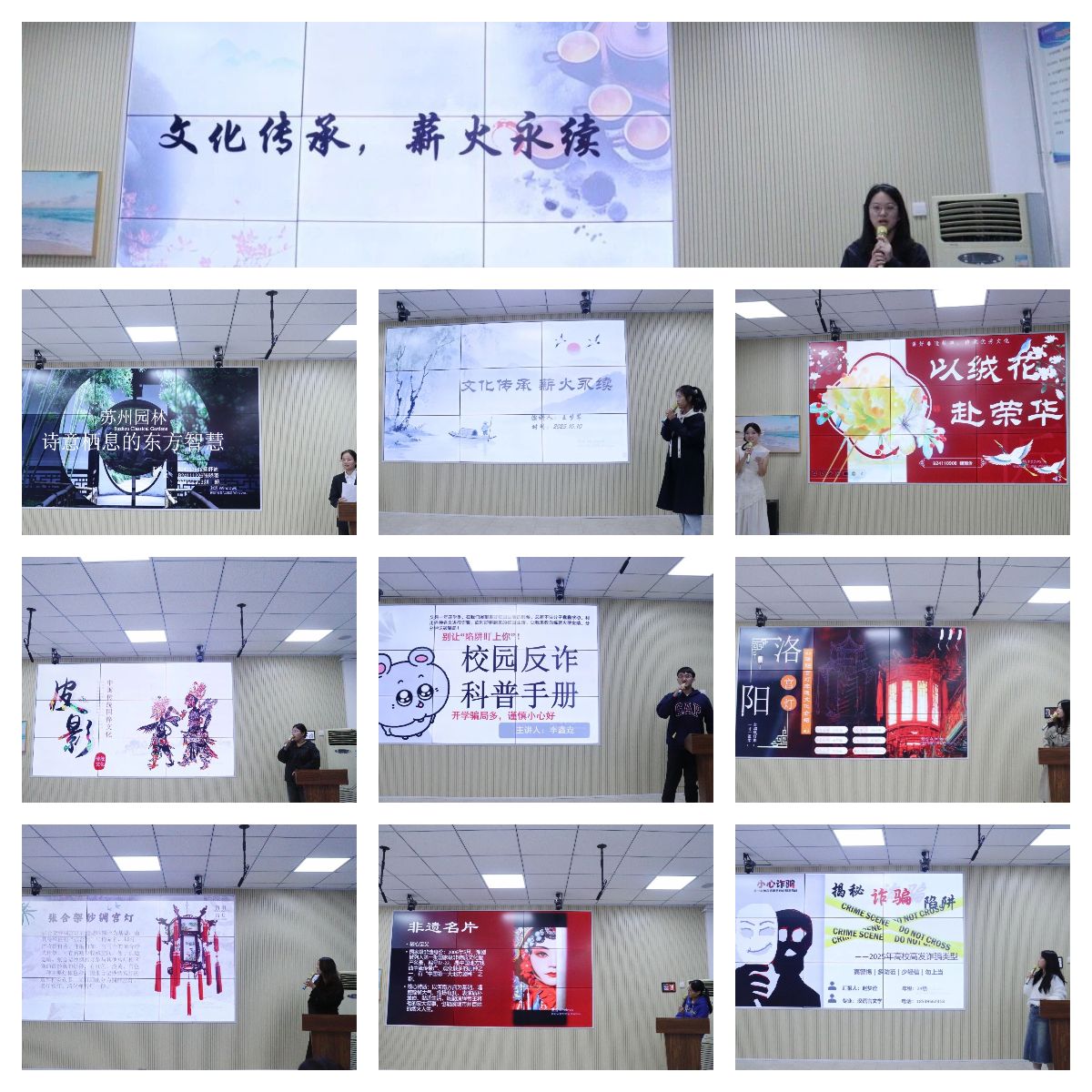 比赛伊始,选手们依次登台,围绕文化传承、反诈防骗等多元选题,结合精心制作的PPT展开讲述。他们以生动的表达与富有创意的视觉呈现,多角度诠释自己想要表达的主题内容,充分展现了选手们在PPT制作上的扎实功底和娴熟的操作技能,现场气氛热烈,掌声不断。