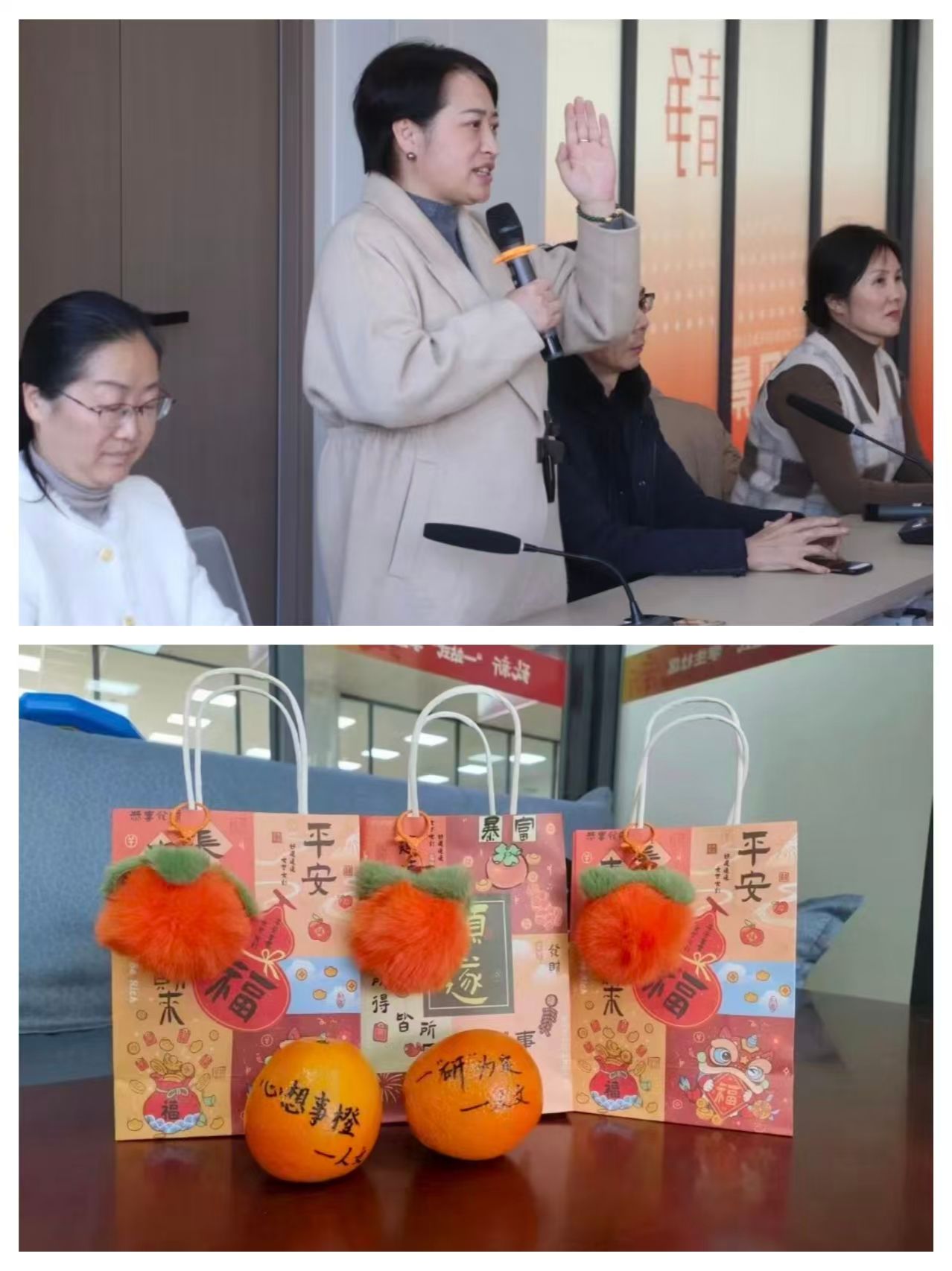随后,孙利丹在发言中谈及学院为考研学子暖心筹备了196份考研加油包,包里红润的“柿子”挂件与金黄的橙子合在一起,寓意“柿柿”如意、“橙”心如意、心想事成,这份心意,既是学院对学子们的贴心关怀,更承载着对大家考研顺利、心想事成的美好祈愿。