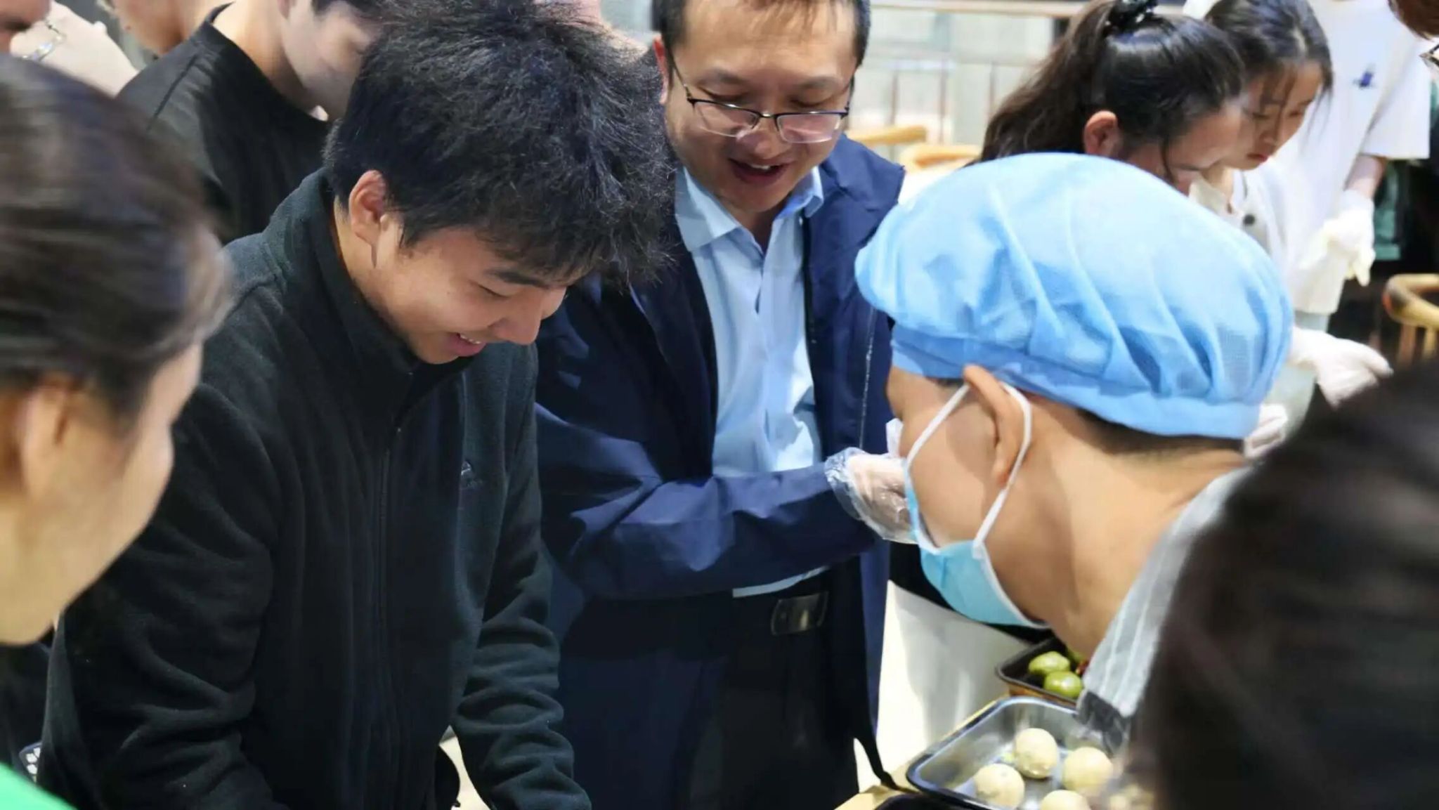 活动由院党委书记邱晓嘉带领留校学子与值班老师齐聚一堂,共赴这场“舌尖上的团圆”。后勤饮食服务中心提前筹备食材、工具以及现场耐心细致的讲解如何制作月。大家分工协作,手法从生疏到熟练,指尖翻飞间,一个个形态饱满、花纹清晰的月饼逐渐成型。面团的软糯、馅料的香甜交织,不仅是味蕾的预告,更揉进了学院对留校学生的双重牵挂——即便未能归家,校园亦是团圆港湾。