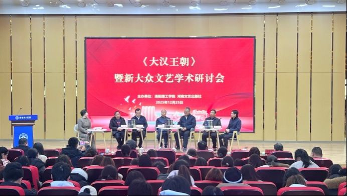 12月25日上午,《大汉王朝》及新大众文艺学术研讨会在我校开元校区图书馆报告厅举行。研讨会由我校和河南文艺出版社联合主办,致新社区人文学院承办。中国作协副主席白庚胜,文物博物馆研究员、习近平新时代中国特色社会主义思想特约研究员、新时代中国文化战略研究院专家刘玉宏,北京戏曲学院教授孙淑玲,河南省作协副主席南飞雁,南阳市四届人大常委会常务副主任、一级作家、《大汉王朝》作者秦俊,洛阳职业技术学院原党委书记、洛阳市老年人体育协会主席朱美荣,河南文艺出版社副社长王晓东,河南文艺出版社主任、《大汉王朝》主编俞芸,南阳市作家协会副主席兼秘书长水兵,我校党委书记卢志文、党委副书记胡恩立出席研讨会。学校相关职能部门负责人及汉语言文学系师生代表300余人参加活动。研讨会由致新社区人文学院院长张丽娜主持。