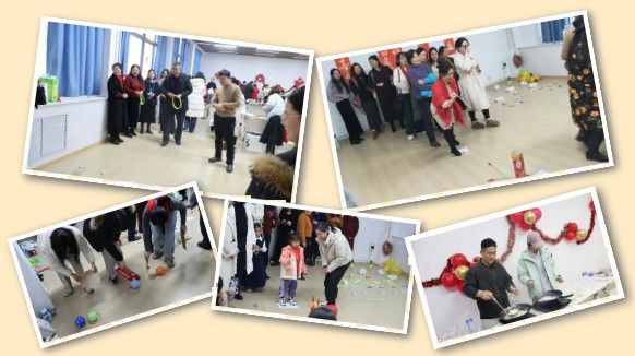 分会场XE301同样热闹非凡,"教工庙会"别具特色。在"美食天地",老师们一起吃饺子、煮汤圆,在欢声笑语中感受浓浓年味。"游戏乐园"里更是妙趣横生,套圈、正话反说、投壶、原地踏步、冒险闯关等传统游戏让老师们童心未泯。