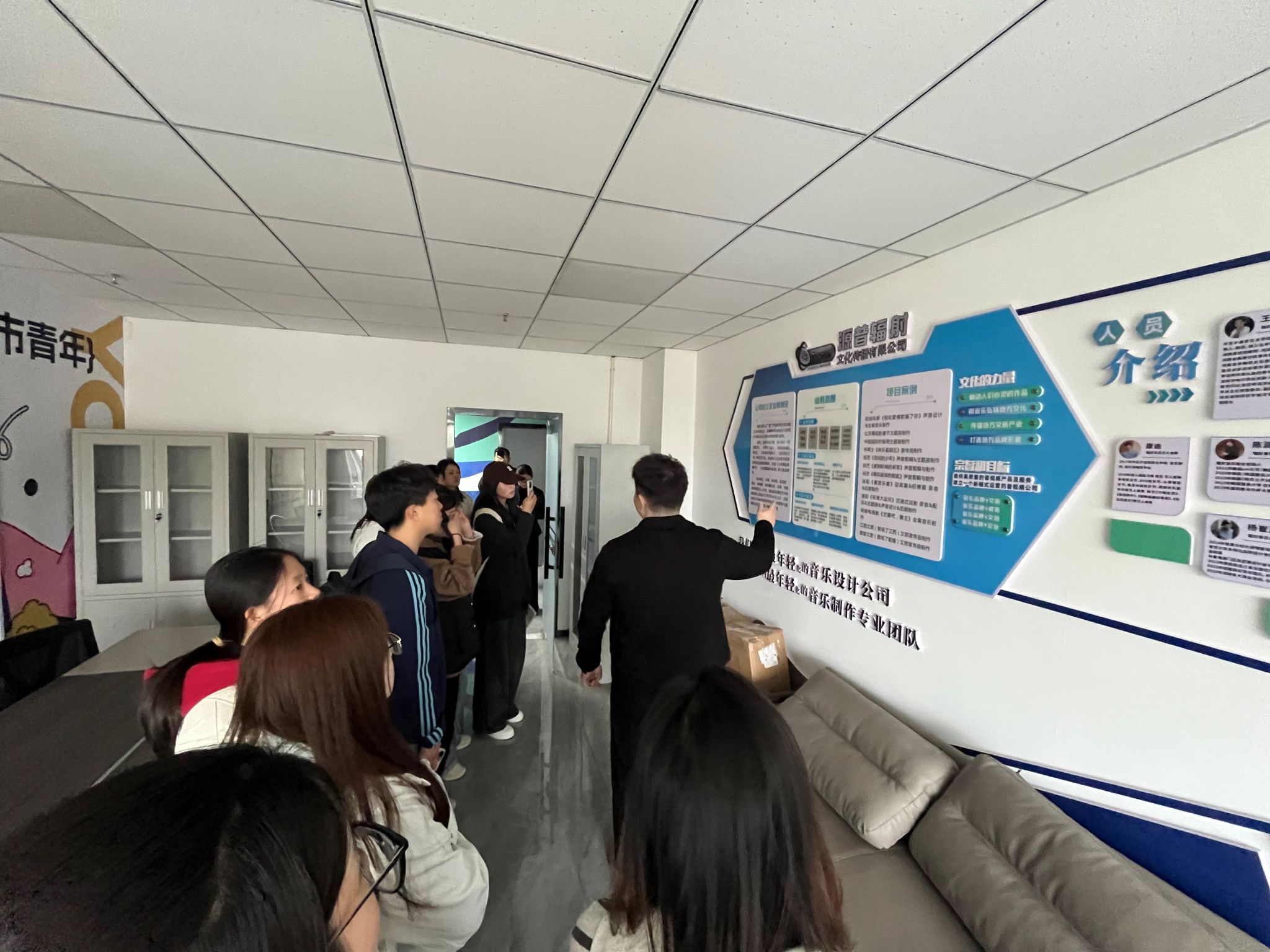 3月26日,调研团队首先抵达洛阳大河荟,在刘志伟总经理引导下,同学们实地了解其“历史文化+青年社群”的创新模式,感受传统文化活化传播的新路径。双方就校企合作、人才培养、岗位供给等议题交换意见。随后,团队前往洛阳源昔辐射文化传播有限公司,同学们在专业人员指导下,亲身参与原创歌曲创作、旋律打磨及剪辑制作全流程,提升专业实践能力,激发文化创作热情。