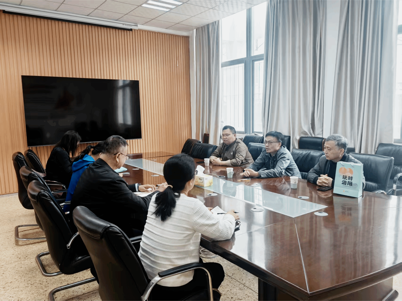 学院领导介绍了学院的基本情况、学科特色以及服务地方经济社会发展方面的举措。近年来,学院在人才培养、跨文化传播研究及“政产学研”合作等方面取得积极进展,致力于培养“懂外语、通传播、强实践”的复合型外语人才。学院表示,将充分发挥外语学科优势,积极参与洛阳文旅资源的对外译介与推广工作,为洛阳建设国际文化旅游名城贡献力量。